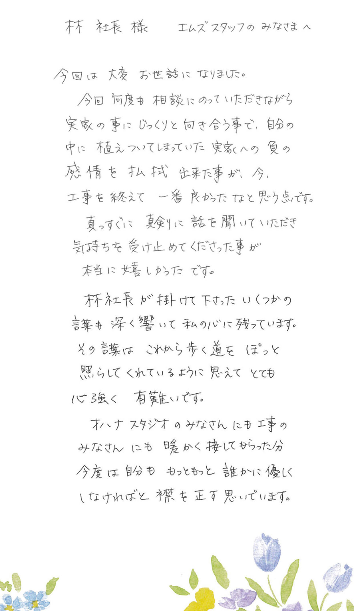 林社長様 エムズスタッフのみなさまへ