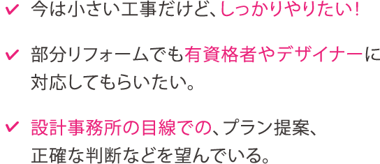 大手さんやチェーン店型リフォーム店のように沢山の案件をこなすことができませんし、ご相談の内容によっては承ることができかねる場合もございますことをご了承くださいませ。